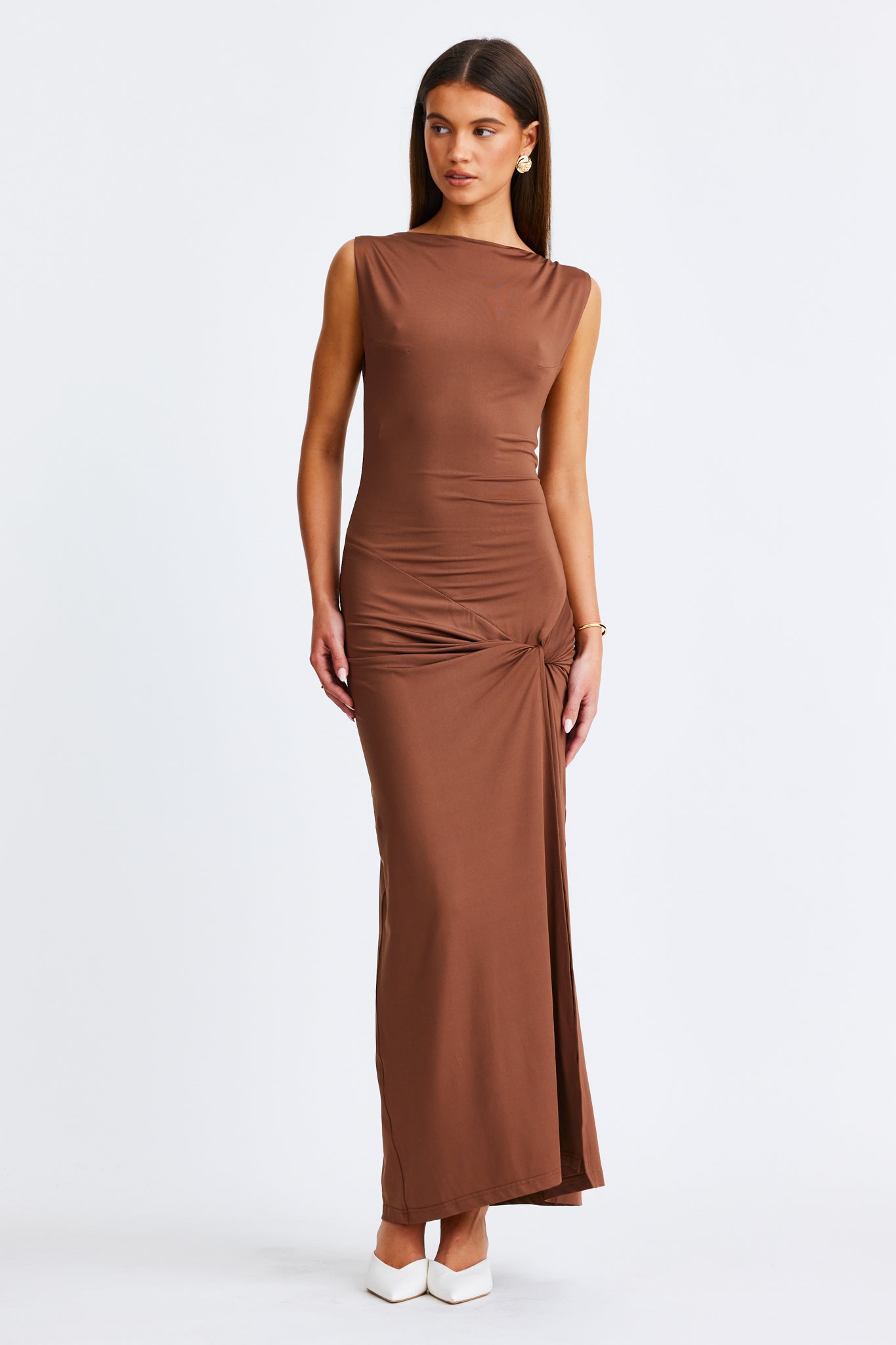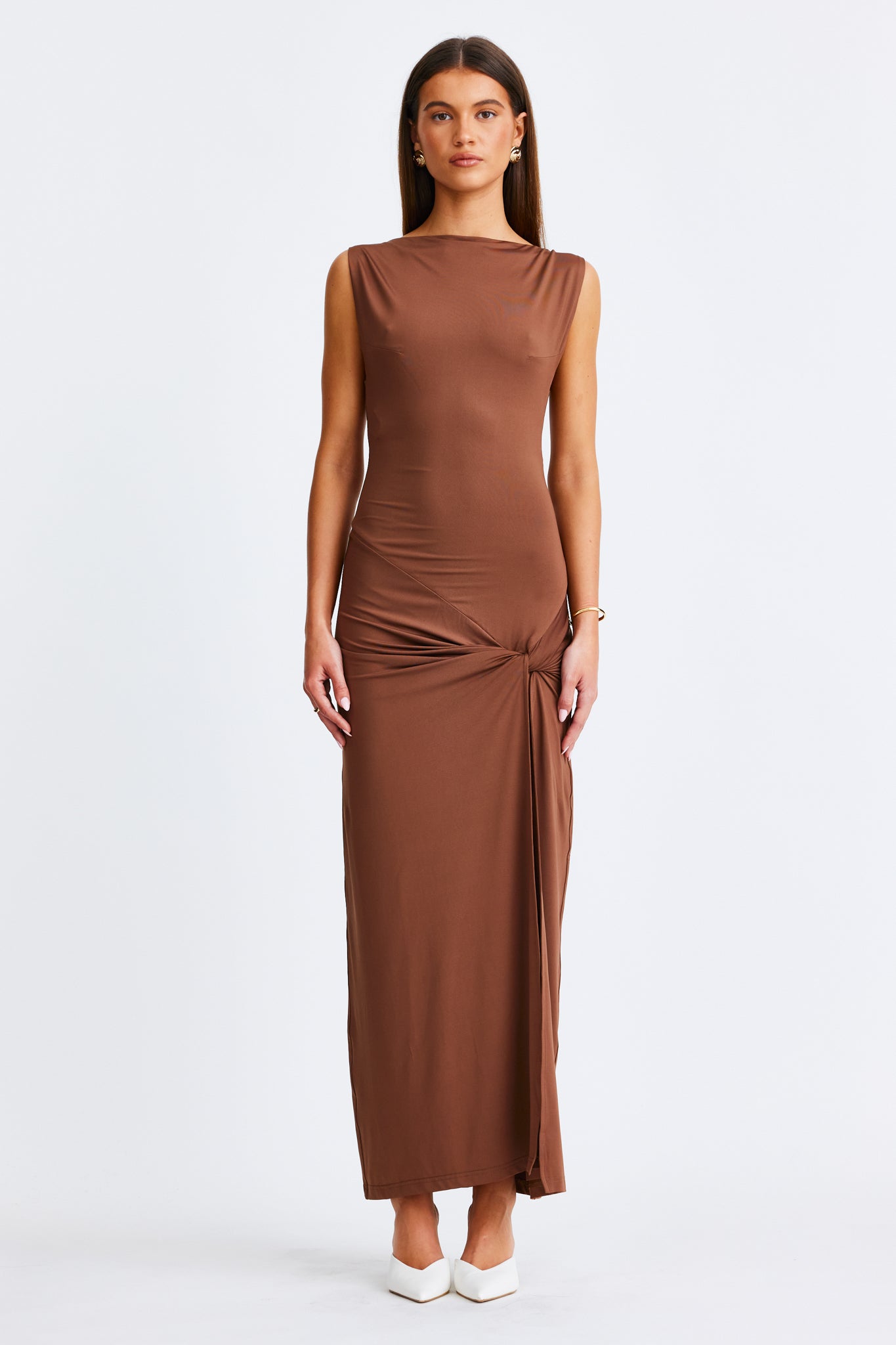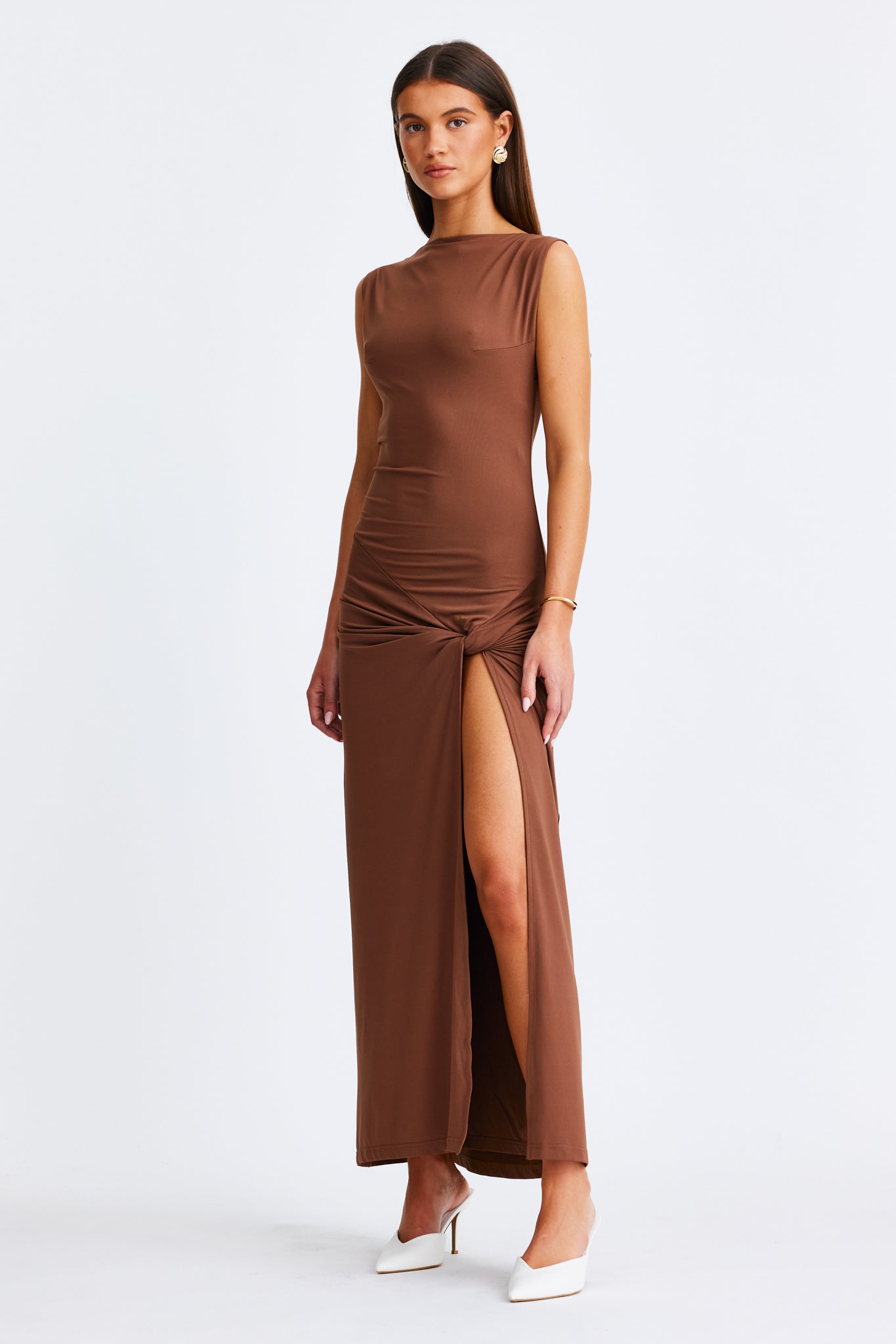 Maxi length with front split and knot detailing