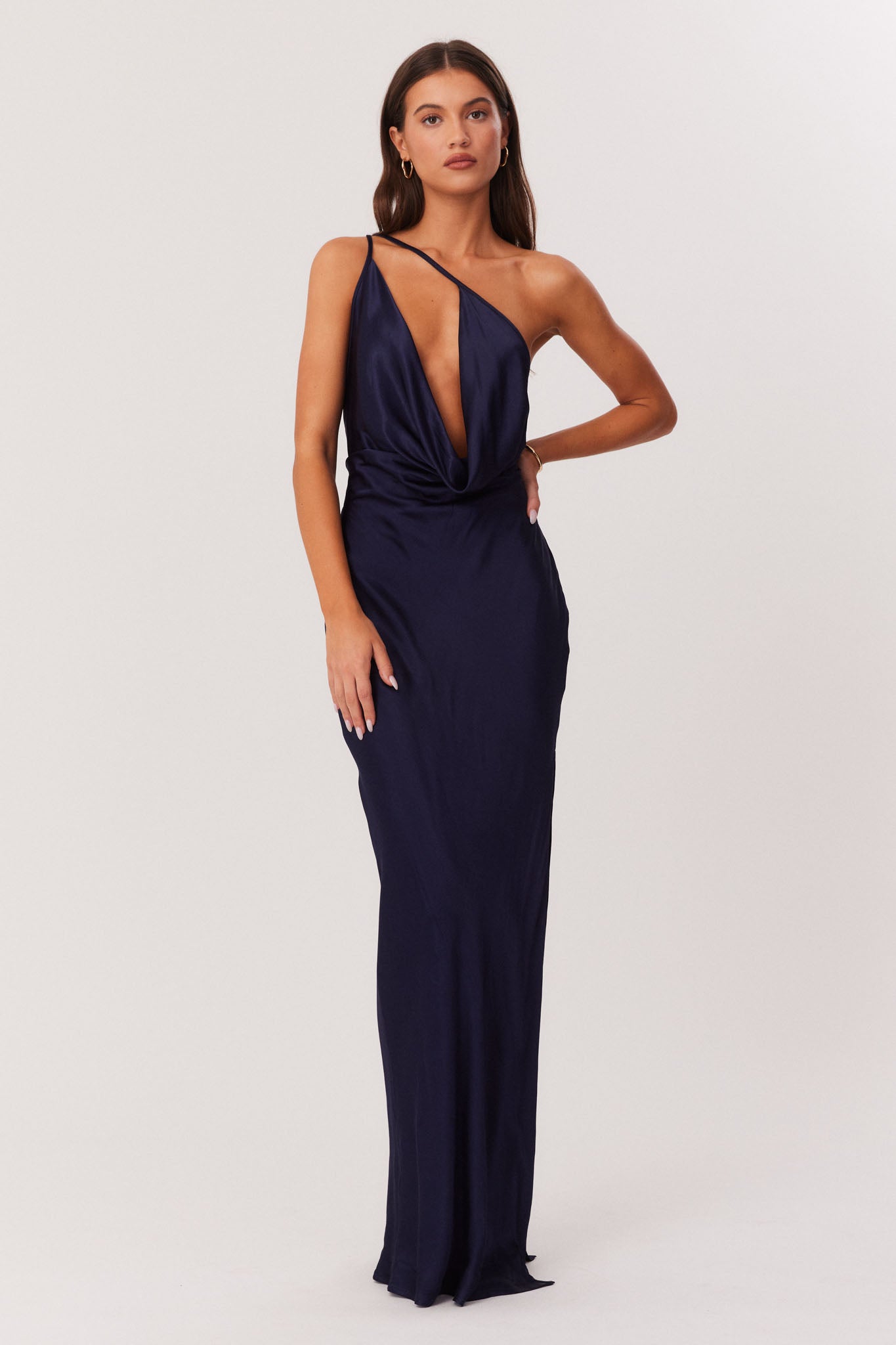 Asymmetrical cowl neckline