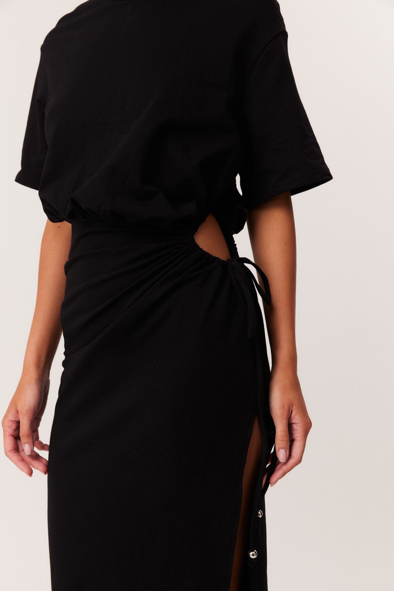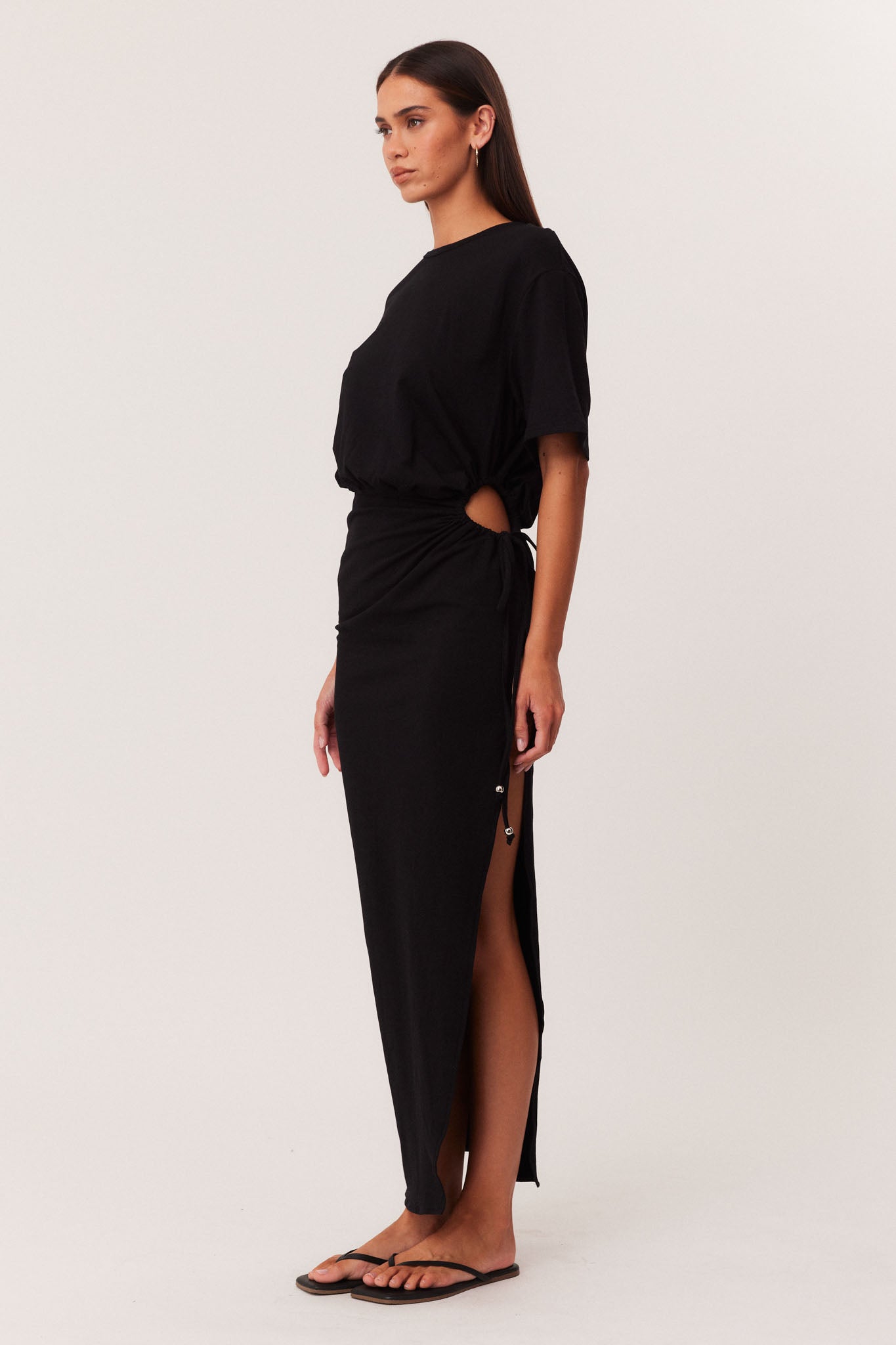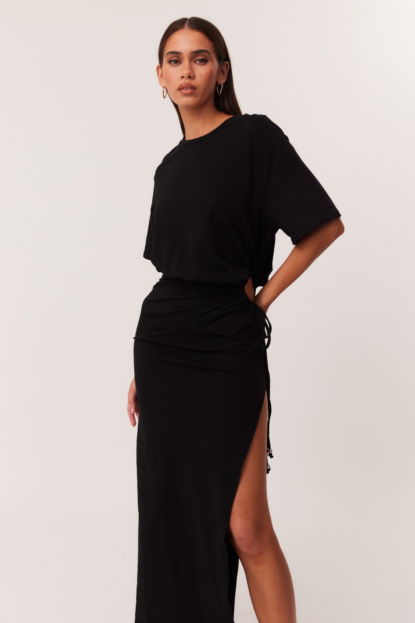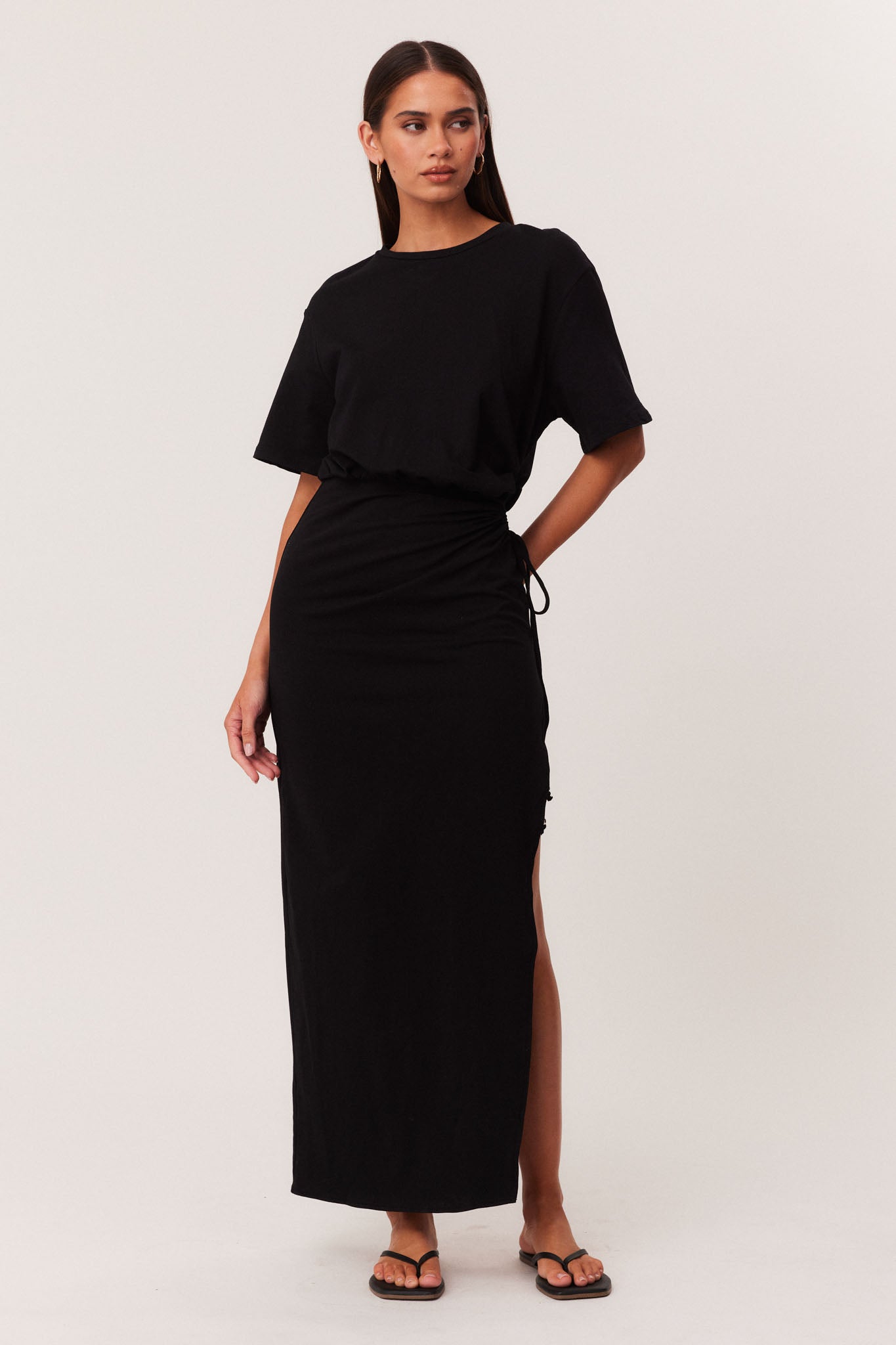 Maxi length with adjustable drawstring side detail