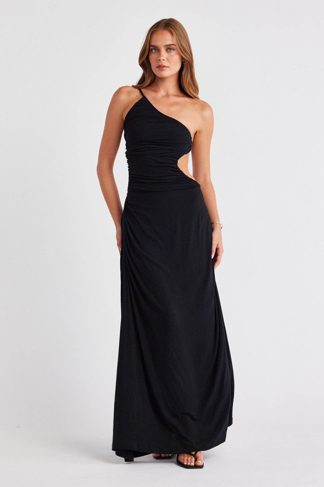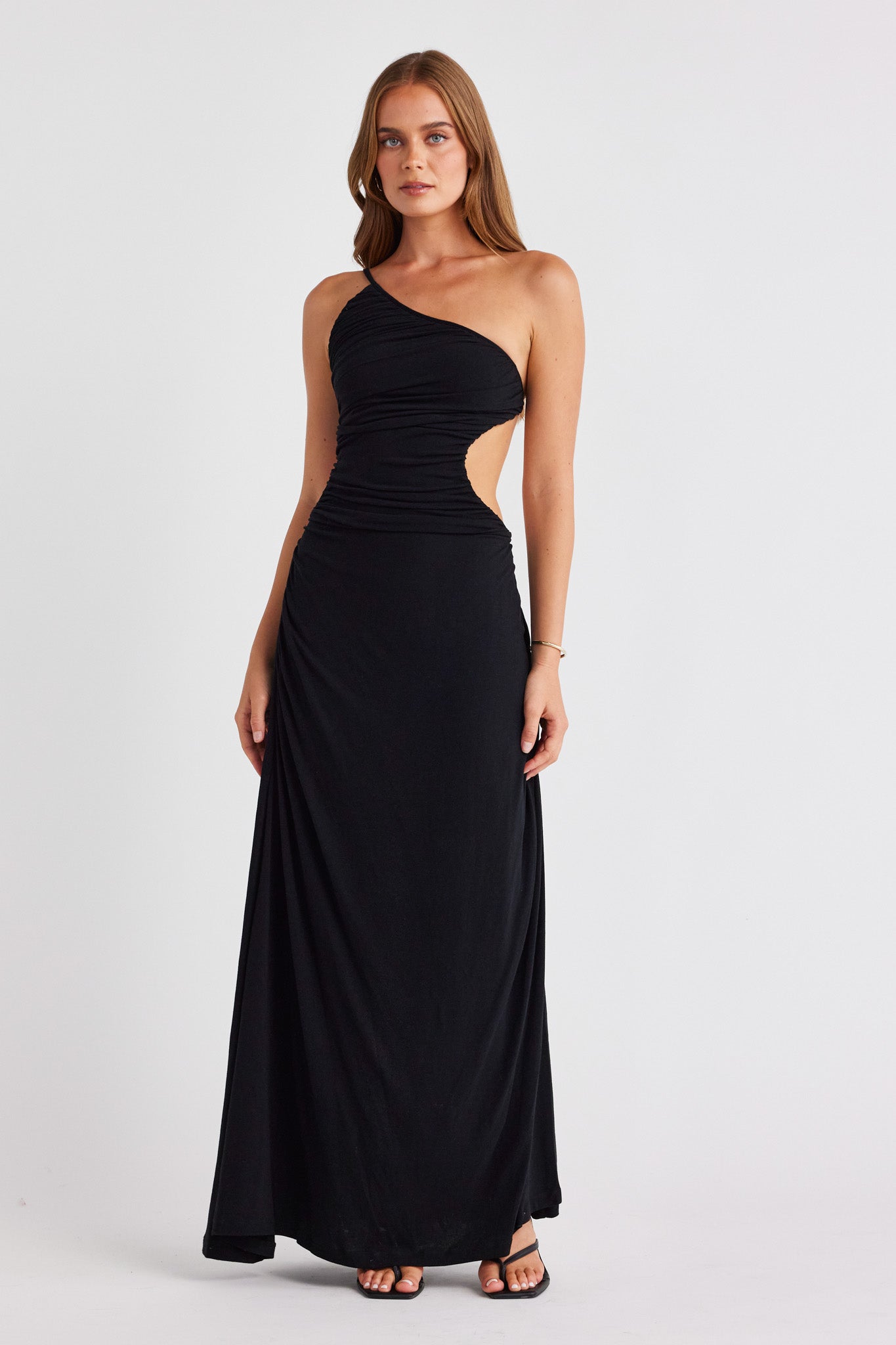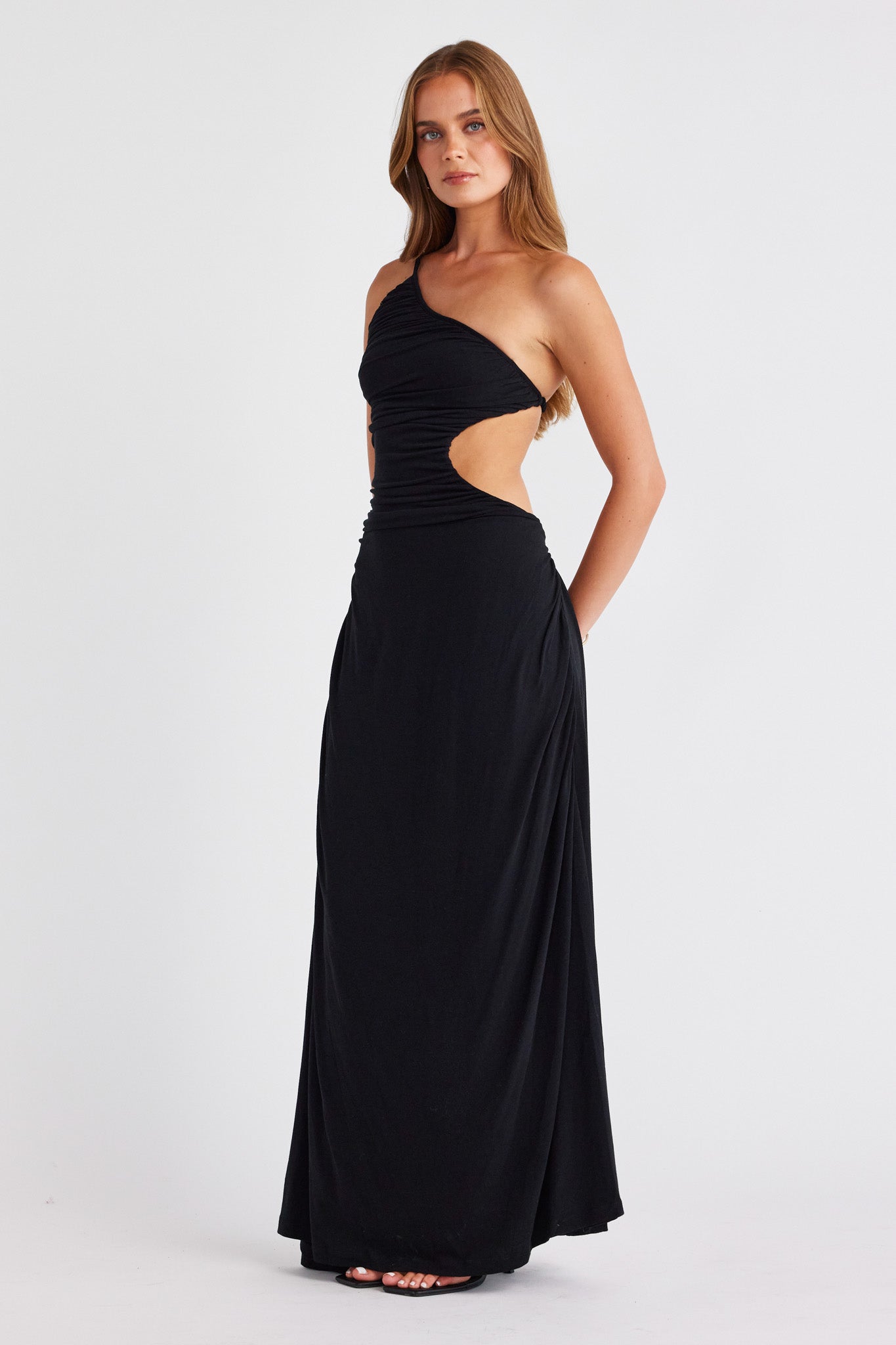 Exuding confidence and femininity, meet The Monaco Dress. This one shoulder moment features an exposed back, side cut out and gathered ruching creating a timeless and sophisticated look. Compliment the look with refined accessories and let The Monaco speak for itself.