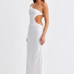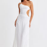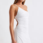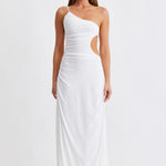 Exuding confidence and femininity, meet The Monaco Dress. This one shoulder moment features an exposed back, side cut out and gathered ruching creating a timeless and sophisticated look. Compliment the look with refined accessories and let The Monaco speak for itself.