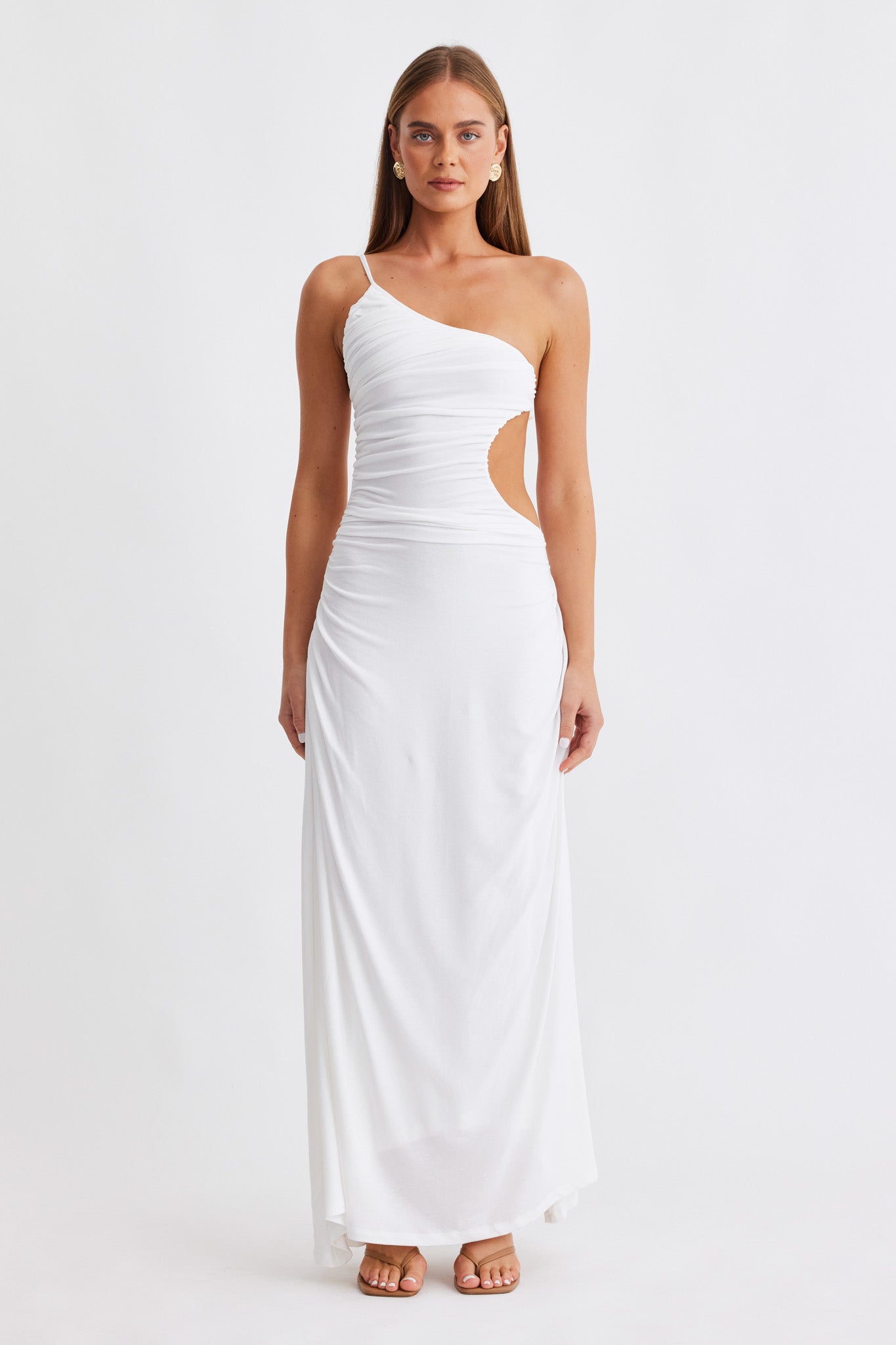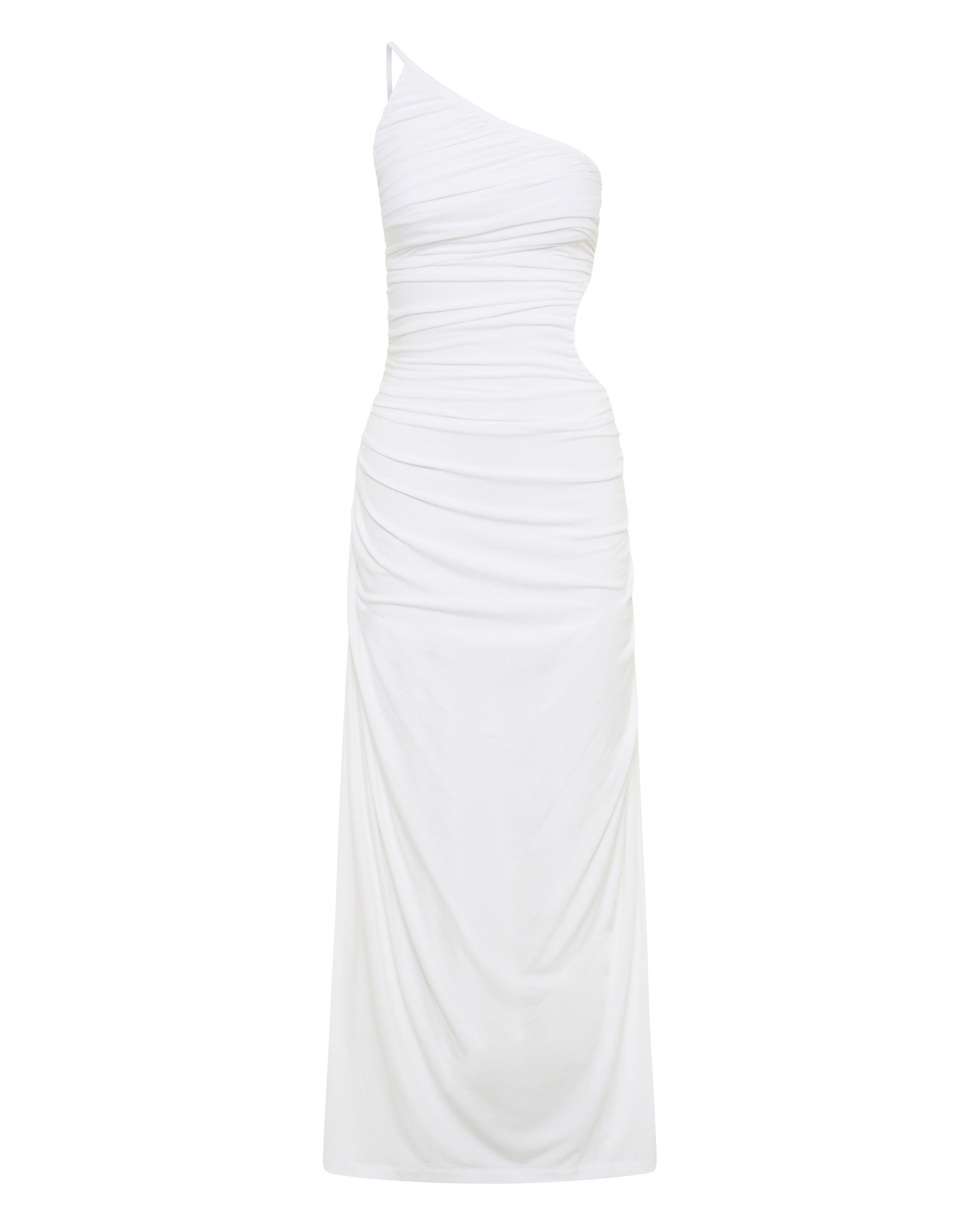 Exuding confidence and femininity, meet The Monaco Dress. This one shoulder moment features an exposed back, side cut out and gathered ruching creating a timeless and sophisticated look. Compliment the look with refined accessories and let The Monaco speak for itself.